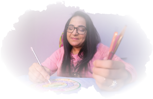 She is a therapist and artistic healer specializing in Mandalas, Psychopainting, and Sacred Geometry. She has enriched her career by training with renowned national and international teachers, including Diry Navas, with whom she earned a Master's in Neurolinguistic Programming; Soraya Volcán, from whom she studied the Mesh Mandala method; and Anabel Lozano, in the fields of Sacred Geometry and mandala art therapy.Her studies also include Bioneurography, Art Therapy, mandala readings, personalized mandala design for therapy, harmonization, inspiration, relaxation, and transforming the energy of spaces. Her style reflects a harmonious fusion between geometric precision and spiritual depth.